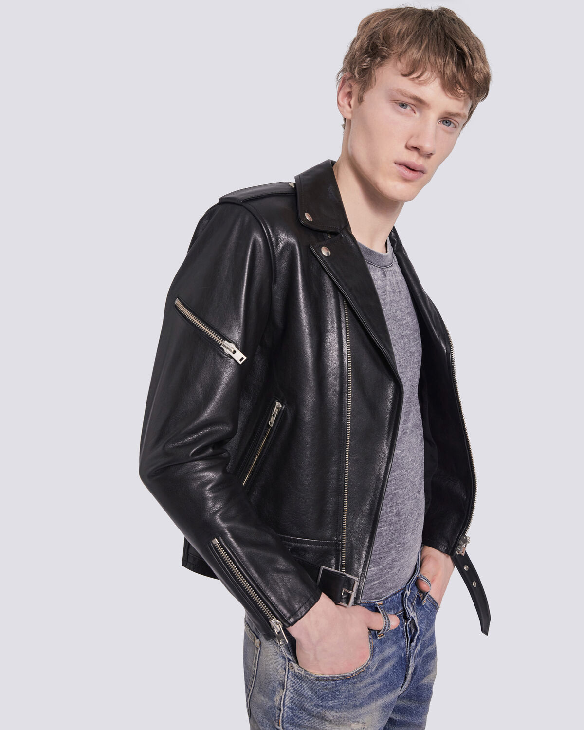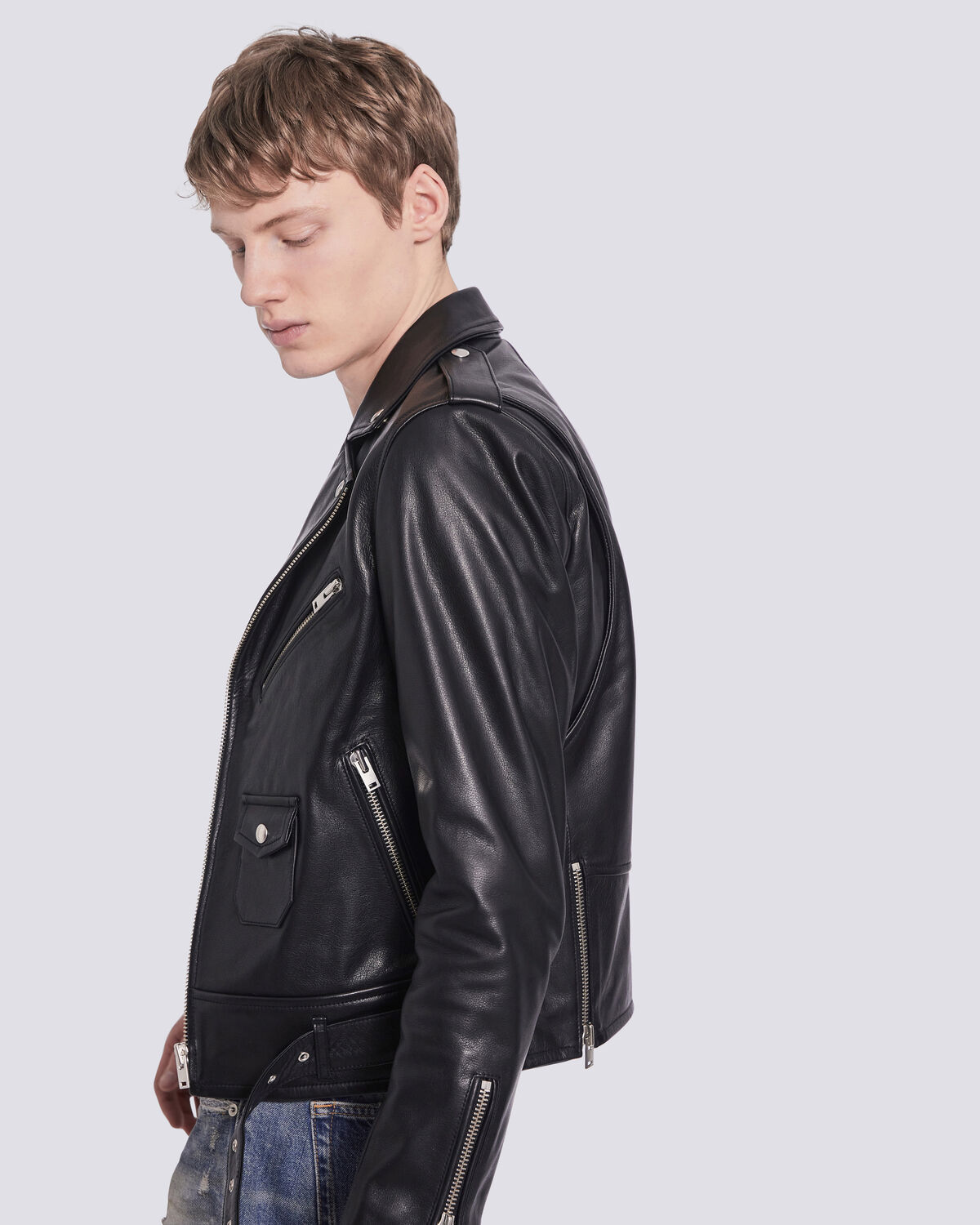 LKK1920 Boys Black Leather Biker Jacket with Patch Pocket Styling. Leather moto jacket adjustable waist buckle belt button-close coin pocket interior zip pocket details made in italy true to size Model wears a size 48 full length zip closure Italian plonge leather leather specialist cleaning recommended. Thurlow Leatherworld motorcycle black leather jacket mens size small 200 aus Round Rock pic hide this posting restore restore this posting.